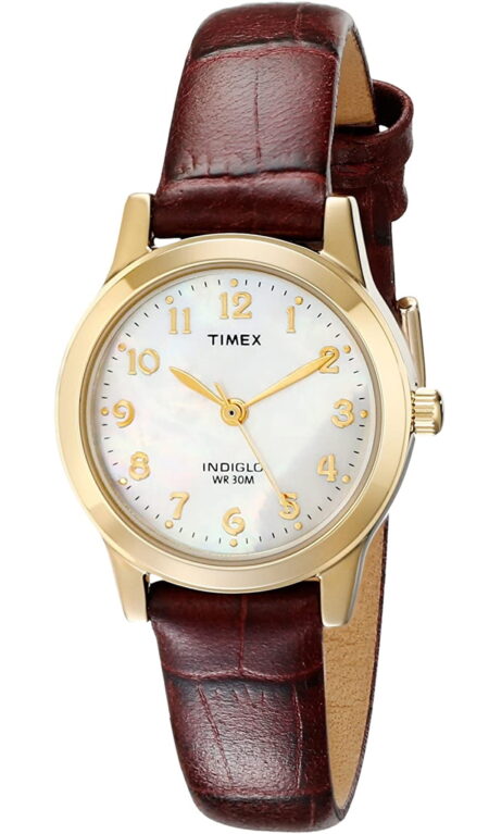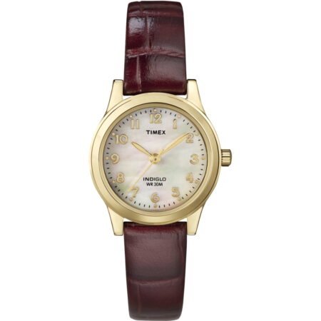 Timex Women’s Essex Avenue Gold/Burgundy/MOP 25mm Dress Watch, Leather Strap
