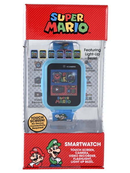 Nintendo Mario Brothers iTime Unisex Child Smart Watch with Silicone Strap and Blue Case 42mm