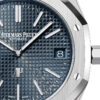 Unworn Audemars Piguet Royal Oak “JUMBO” EXTRA-THIN “50TH ANNIVERSARY” 16202ST.OO.1240ST.01. 39 mm, “Bleu nuit nuage 50” dial with “Petite Tapisserie” pattern, white gold applied hour-markers and Royal Oak hands with luminescent coating, Stainless steel case, glareproofed sapphire crystal and caseback, 7121 calibre, Selfwinding movement, 55 h power reserve, 33 jewels, Stainless steel bracelet with 18-carat pink gold AP folding clasp. Water resistant to 50 m.