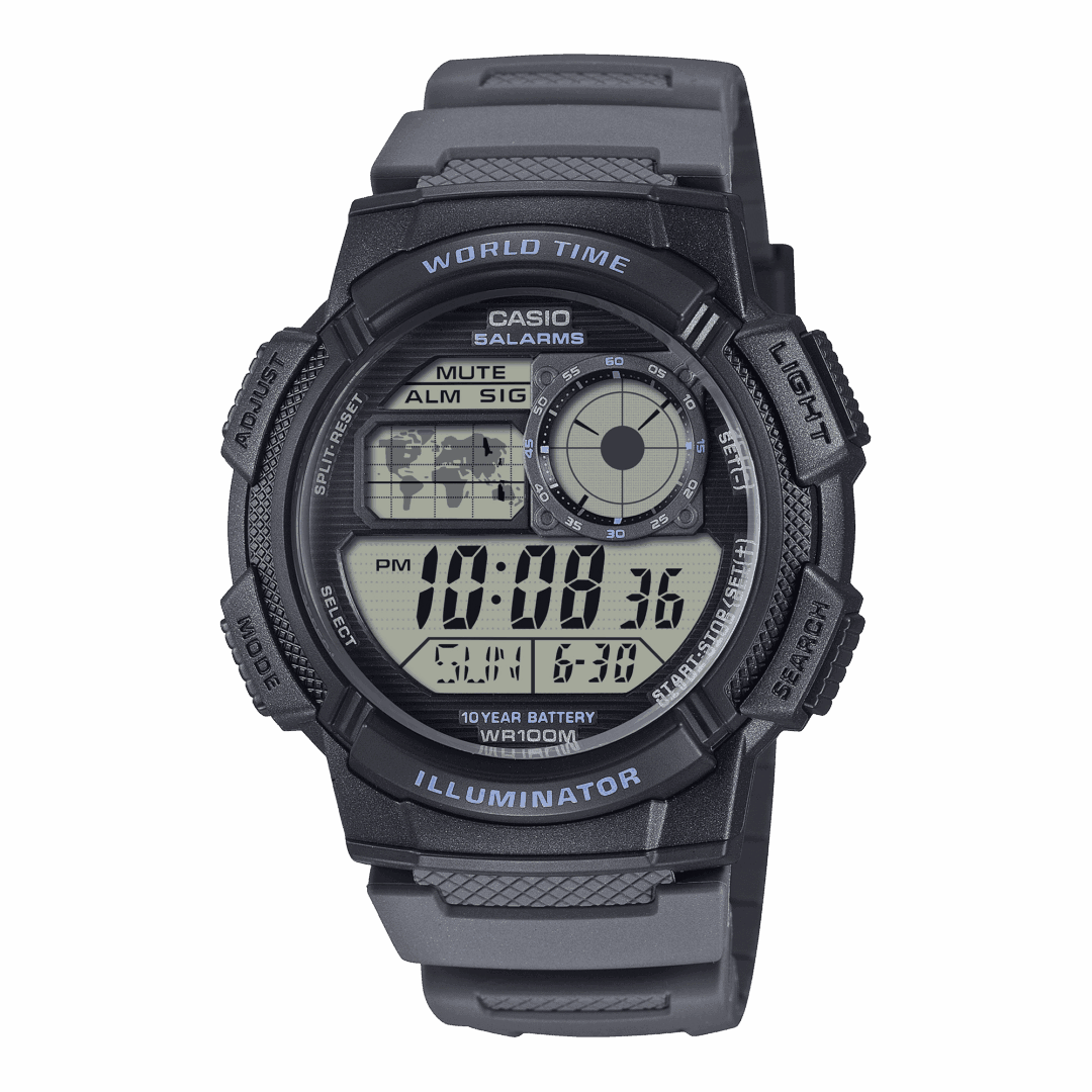 - 10 year Battery; 100 Meter Water Resistant; Gray Resin Band
