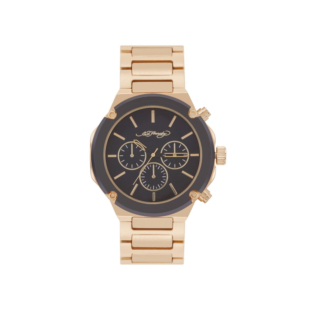 Ed Hardy Singles Quartz Men’s Brushed Gold Metal Strap 46mm Analog Watch