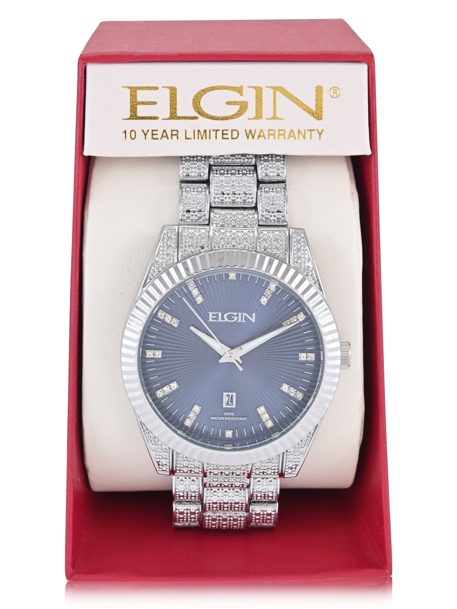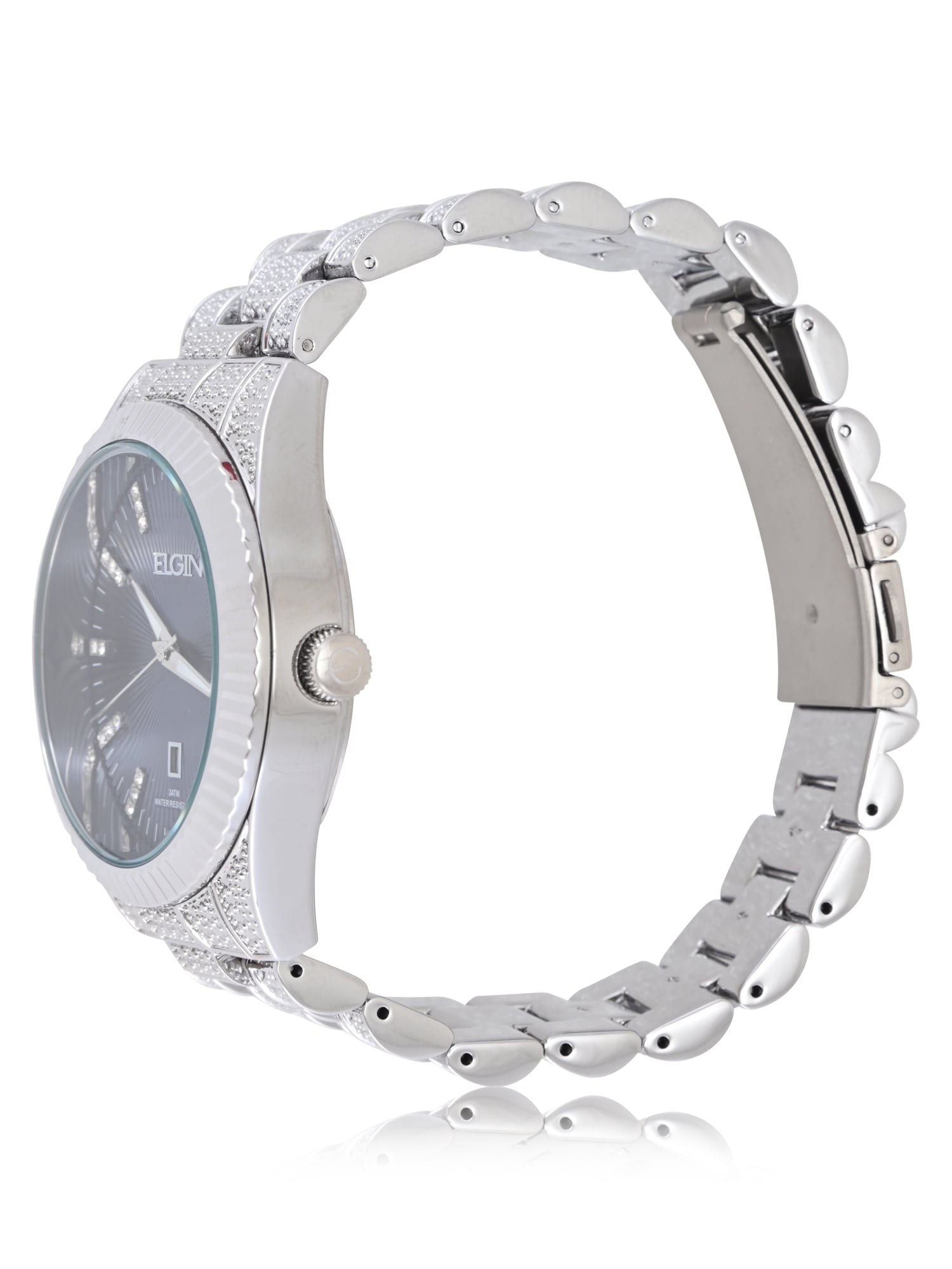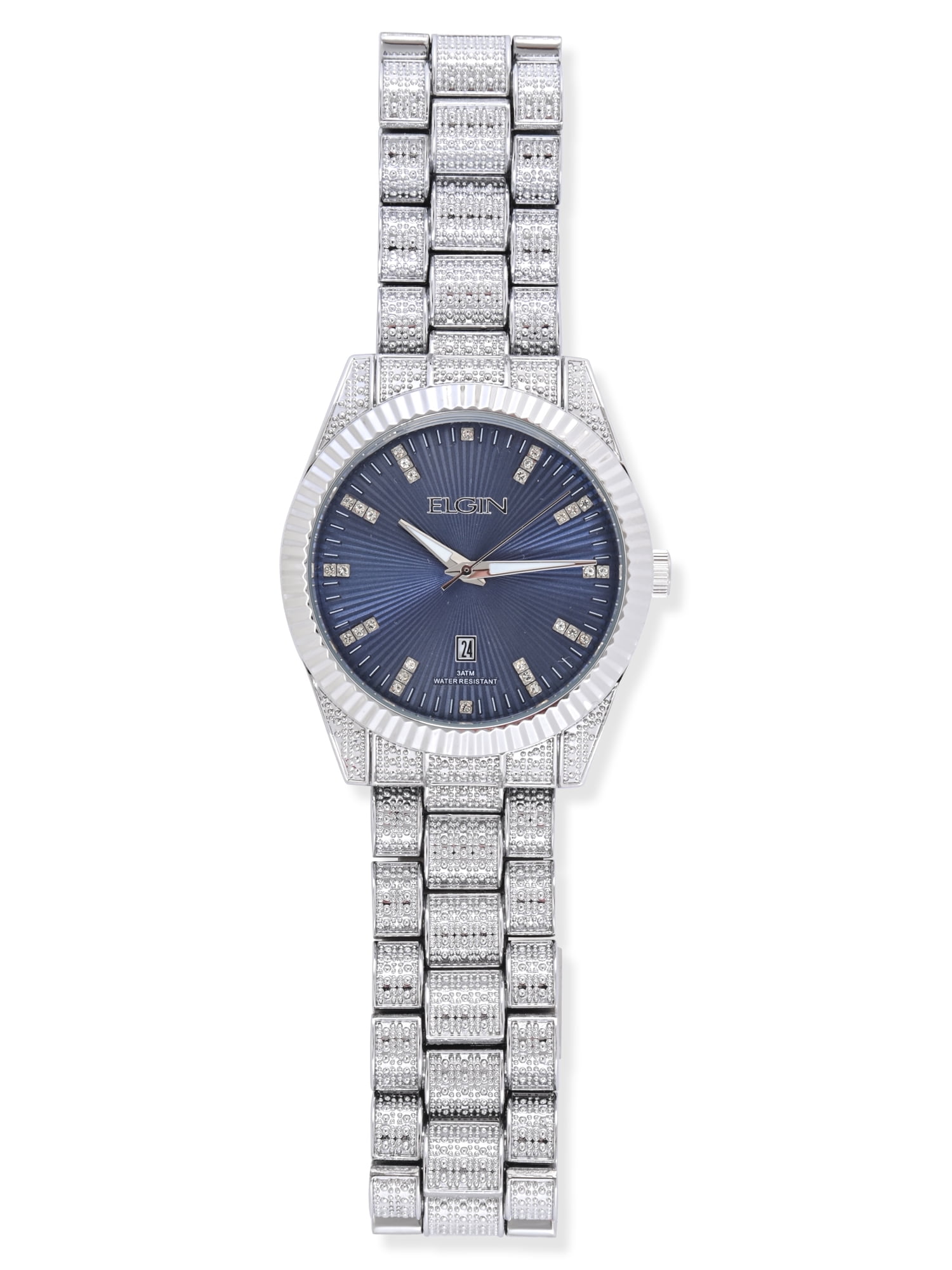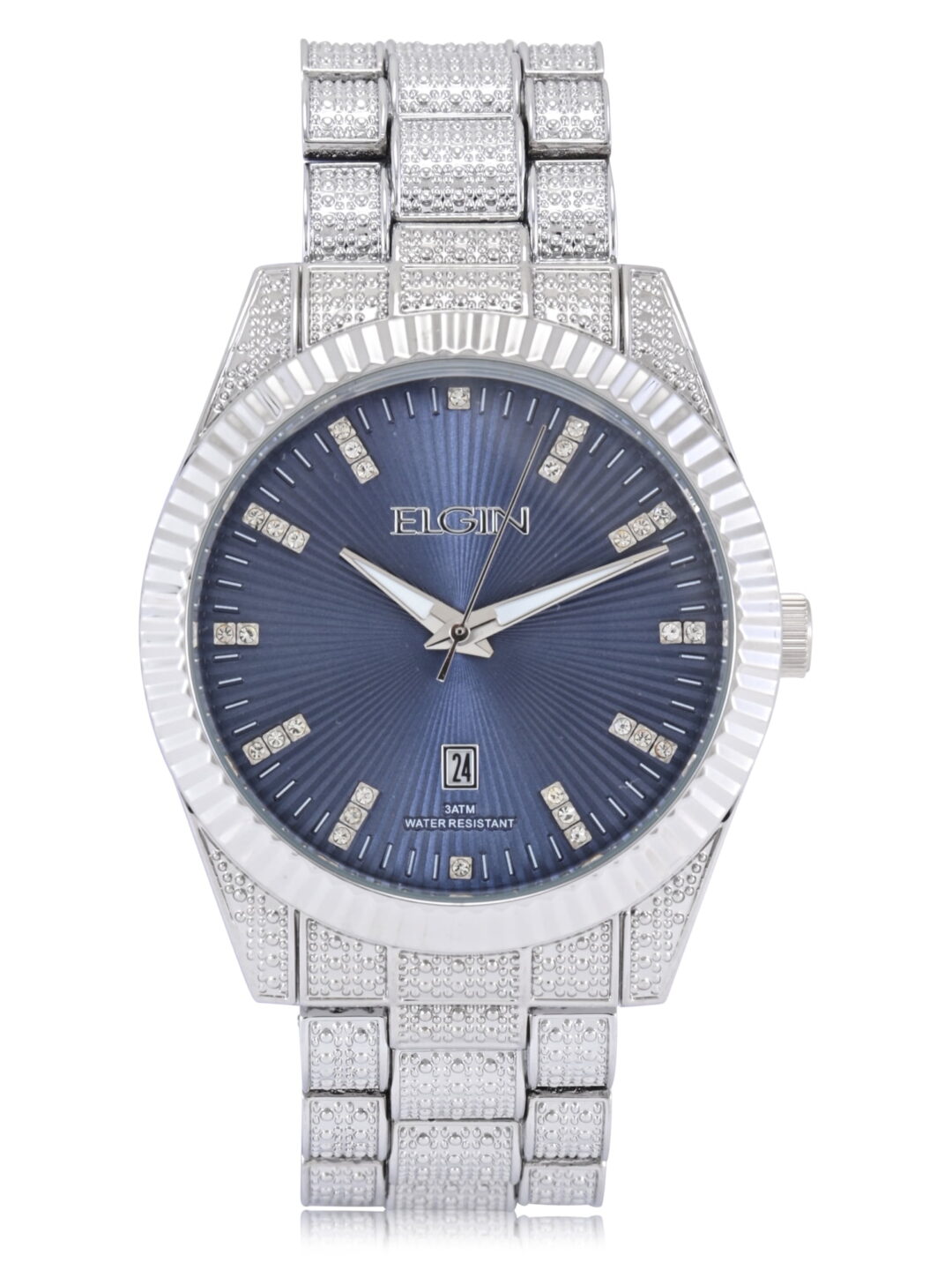 Elgin Adult Men’s Silver and Crsytal Round Case Watch with Blue Dial. (FG180038)