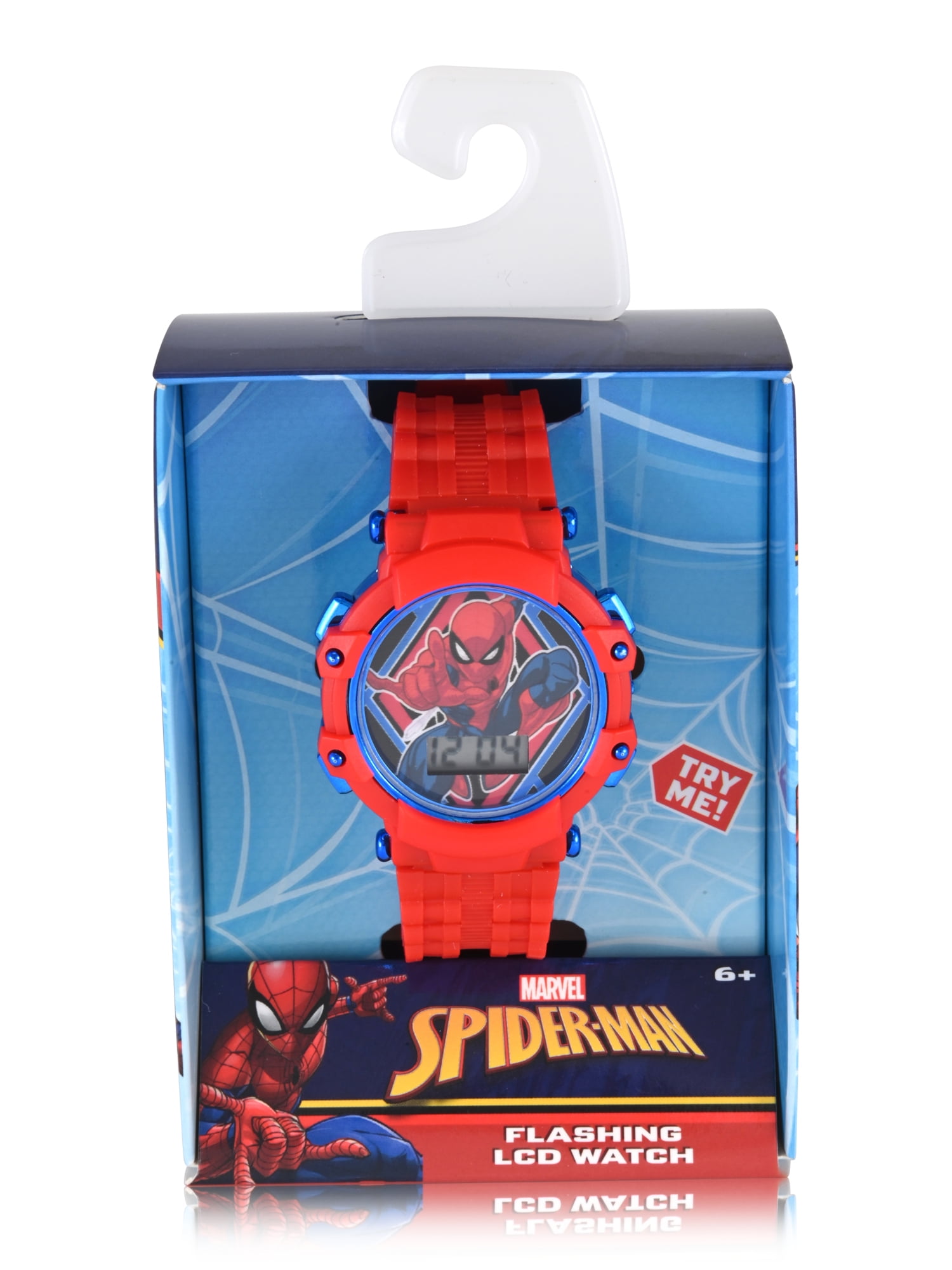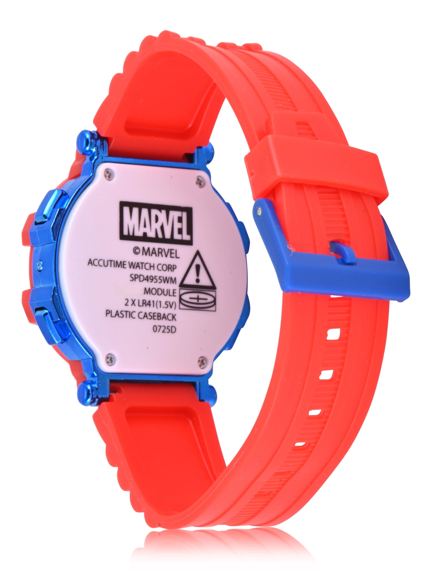 The Marvel Spider-Man Unisex Child Red and Blue LCD Watch (Model #SPD4955WM) combines practical timekeeping with engaging design for young fans. The red case with a blue inner bezel features flashing lights, making the LCD display easy to read while adding visual interest. The red printed strap highlights Spider-Man graphics, providing character-inspired detail that children enjoy. The buckle closure ensures a safe, secure, and adjustable fit for growing wrists, offering comfort throughout daily activities. Lightweight and durable, this watch supports everyday wear while helping children develop time-telling skills, all while showcasing their favorite Spider-Man character in a fun and functional accessory.