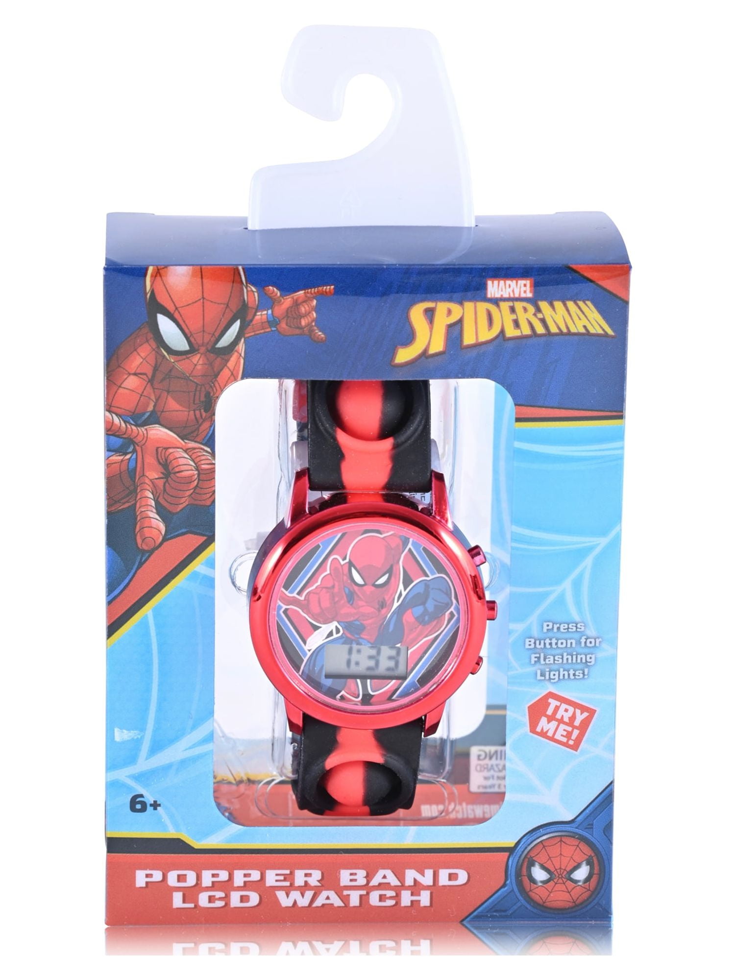 • Marvel “Spider-Man” Unisex Children’s LCD Watch with Popper Strap in Red – SPD4845WM. Every moment of your life is precious, and your time is valuable. Our attention to detail is reflected in our craftsmanship from the mechanics to the finish, as we know that our customers will not compromise on style or substance. Each watch is carefully designed and crafted with quality materials and Quartz movement. This watch is water resistant and can withstands splashes or brief immersion in water, but not suitable for swimming or bathing.