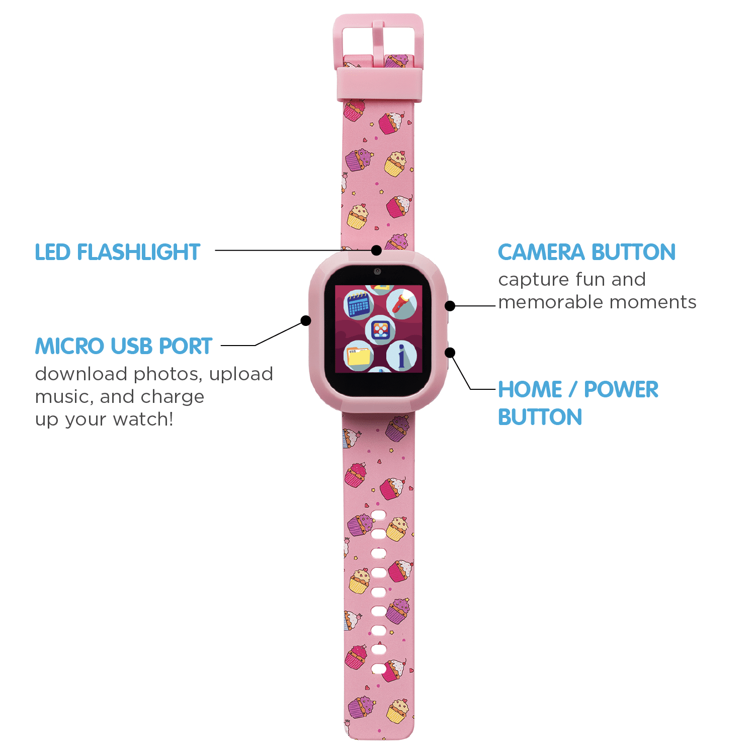 - STORE MUSIC & CAMERA: Store music right on the watch! Hook it up to a PC or laptop with the included microUSB cable, drag and drop songs your child loves, and get the party started! Selfies are easy with the camera. Snap pictures and add fun frames or take videos! Audio bedtime stories help your child get to sleep and give parents a break from the standard night time routine. Lay back and listen to some classic stories directly from the watch!