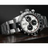 Immerse yourself in the luxurious essence of timeless craftsmanship with the Rolex Blaken Daytona Cosmograph Replica. This exquisite timepiece brings together the pinnacle of haute horlogerie and meticulous attention to detail, all in a replica that mirrors the grandeur of the authentic model. Picture this: the gleaming 904L stainless steel case and bezel, paired with a striking black bezel color that effortlessly complements the pure white dial. The dial captures the eye with its elegant stick and dot indices, and the precision-engineered stick hands made from the same high-grade 904L stainless steel. This is not just a watch; it’s an experience, an artifact of unparalleled sophistication that promises to turn heads and spark conversations.