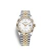 Rolex Datejust 36 watch with polished 18k Yellow Gold and Stainless Steel case, Reference 126233-0029. This model has White dial with applied polished 18k Yellow Gold Roman numerals hour markers. The dial is adorned Rolex Crown logo of 18k Yellow Gold at the 12 o’clock position and polished 18k Yellow Gold hands. Fine printed minutes/seconds track on the dial perimeter. Date window with a “Cyclops” magnifying lens displayed at the 3 o’clock position. Polished 18k Yellow Gold “Twinlock” crown, featuring two sealed zones when the crown is screwed down: the first inside the tube of the crown, the second inside the winding crown itself. The dial closed by a Scratch-resistant Sapphire Crystal and solid case back made. The watch is equipped fluted fixed polished 18k Yellow Gold bezel. The watch is mechanical self-winding Manufacture Rolex 3235 contains 31 Jewels and has an approximate power reserve of 70 hours of power reserve. This model presented on Jubilee bracelet of brushed Stainless Steel outer links and polished 18k Yellow Gold center links with a Folding Oysterlock safety clasp with Easylink 5 mm comfort extension link. The water resistance is up to 100m/330ft (10 ATM). The watch is Superlative Chronometer certified: the movement is COSC certified prior to casing, then it is tested a second time by Rolex after being cased to ensure accuracy.