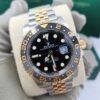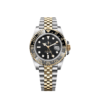 Unworn watch Rolex GMT-Master II, 40mm, Oystersteel and 18k Yellow Gold, Ref# 126713GRNR-0001. New for 2023, the Rolex Oyster Perpetual GMT-Master II marks the return of 18к Yellow Gold to the prestigious professional watch family. Elegant and versatile, this stunning timepiece is the perfect luxury accessory for the modern traveler. The stunning chronometer features a black lacquered dial with a crisp Chromalight display with a long blue glow that is the perfect backdrop for the luminous 18к Yellow Gold hour markers in rectangles, circles and an inverted triangle at 12 o’clock. The polished hour hand, bearing the Mercedes logo and the Breguet-style sword-shaped minute hand are crafted from 18к Yellow Gold and filled with luminescent material that emits a long-lasting glow. The graceful second hand with a round tip and a luminous circle in front of the arrow is also made of 18k Yellow Gold. The innovative high technology of this model is the second time zone. It has an independent quick setting of the 18K Yellow Gold hour hand with a triangular luminous tip that shows “home” time in the first time zone. It can be read from the scale on the bezel. A well-readable minute scale is applied along the outer contour of the dial. The date display is located at the 3 o’clock position. The ribbed, easy-to-grip Triplock 18k Yellow Gold screw-down crown features a triple water-resistance system in and Rolex logo decorated. The dial is covered with a scratch-resistant sapphire crystal with anti-reflective coating and Cyclops lens at the 3 o’clock position. The fluted bezel in 18k Yellow Gold is a true hallmark of Rolex. The bi-directional 18k Yellow Gold bezel has fluted edges for a secure grip. It is topped by a two-tone Cerachrom bezel insert with graduations and PVD-engraved numbers in yellow gold. With a new gray and black ceramic bezel insert, Rolex introduces a brand new color combination for GMT watches. The model is powered by the in-house Rolex mechanical movement, caliber 3285, contains 31 jewels and has an approximate power reserve of approximately 70 hours. This delightful timepiece is presented on a Jubilee bracelet featuring brushed Oystersteel outer links and polished 18k Yellow Gold center links. Thanks to the new hidden fastening system under the bezel, there is a perfect visual continuity between the bracelet and the case. The bracelet features an Oysterlock folding clasp with Rolex’s original Easylink patented quick extension system of which allows you to extend the length of the bracelet by approximately 5mm. Water resistant up to 100m/330ft (10 ATM).