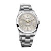 The matching Oyster bracelet with a secure folding Oysterclasp complements the overall aesthetic, offering a seamless and comfortable fit on the wrist. What truly sets this Rolex Oyster Perpetual apart is its striking grey dial, which exudes a refined sense of understated sophistication. The luminescent hour markers and hands stand out against the subtle backdrop, providing clear legibility in any lighting condition. Rolex’s iconic Cyclops lens magnifies the date display at the 3 o’clock position, enhancing its practicality and ease of reading.