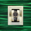 Unworn watch Rolex Perpetual 1908, 39mm, 18k Yellow Gold, Ref# 52508-0002. Striving for the highest level of quality to achieve flawless, long-lasting results is the life philosophy of Rolex. It is in this vein that the global brand has developed a classic collection of watches with a new name and a new look, modestly dressy, ideal for a business suit – Rolex Perpetual 1908. Paying homage to the year in which the “Rolex” lettering first appeared on the dials, the entire Perpetual 1908 model inspired by the watchmaker’s first creation to feature a self-winding rotor. Proof of this is the stunning Intense Black dial with superbly long and narrow 18k Yellow Gold applied indexes and Arabic numerals at 12, 3 and 9 o’clock. At 6 o’clock is a small second’s dial, sportier than you might expect, with 20, 40 and 60 on the track. An elegant sword-shaped minute hand with a classic hour hand marked with a ring at the tip, made of 18k Yellow Gold. A well-readable minute scale is applied along the outer contour of the dial. All this charm is complemented by a ribbed, for a comfortable grip, domed screw-down crown in 18k Yellow Gold with the Rolex logo. The dial is covered with a scratch-resistant sapphire crystal. The highlight of the model is the two-tiered 18k Yellow Gold bezel with a convex and tactile upper part and a characteristic grooved lower part. The model is powered by the in-house automatic Rolex mechanical movement caliber 7140, new 2023, contains 38 jewels and has an approximate power reserve of approximately 66 hours. The mesmerizing work of the mechanism can be seen through the transparent case back. This impressive watch is presented on a matt black alligator leather strap with green lining and tone-on-tone stitching, custom made for this model. It is fitted with an 18k Yellow Gold Dualclasp folding clasp. Thanks to its carefully shaped design, the Dualclasp is always centered on the wrist for maximum comfort. Water resistant up to 50m/165ft (5 ATM).
