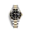 Rolex Submariner Date, 41mm watch of polished Stainless Steel and 18k Yellow Gold. This model has black dial with a polished 18k Yellow Gold hour, minute and seconds hands in Mercedes-logo and Breguet-style sword shape with luminous fill. Applied polished 18kt Yellow Gold rimmed doty and index hour markers with luminous fill. Fine printed minute/seconds track on the dial rim. Highly legible Chromalight display with long-lasting blue luminescence. Polished 18kt Yellow Gold patented “Triplock” locking crown ensuring that the crown screws down onto the Oyster case as securely as a submarine hatch. The dial closed by a Scratch-resistant Sapphire Crystal and solid case back made. The Watch has Centre hour minute and seconds hands. Stop-seconds for precise time setting. Date window at 3 o’clock with a cyclops magnifier. The watch is equipped unidirectional rotatable polished 18k Yellow Gold bezel with knurled corners for enhanced grip. Black “Cerachrom” bezel insert, made of ceramic which is extremely hard, durable and highly scratch-resistant. Ceramic has excellent corrosion resistant properties and is unaffected by ultraviolet rays so the color will not fade. It features a 60-minute immersion scale engraved in yellow gold with a luminous point at the origin. The movement is mechanical self-winding 3235, containing 31 Jewels and 70 hours of power reserve. The Rolex Oyster bracelet of brushed outer links Stainless Steel and polished center links 18k Yellow Gold with folding Oysterlock safety clasp with Rolex Glidelock extension system. The water resistance is up to 300 meters/1000 feet.