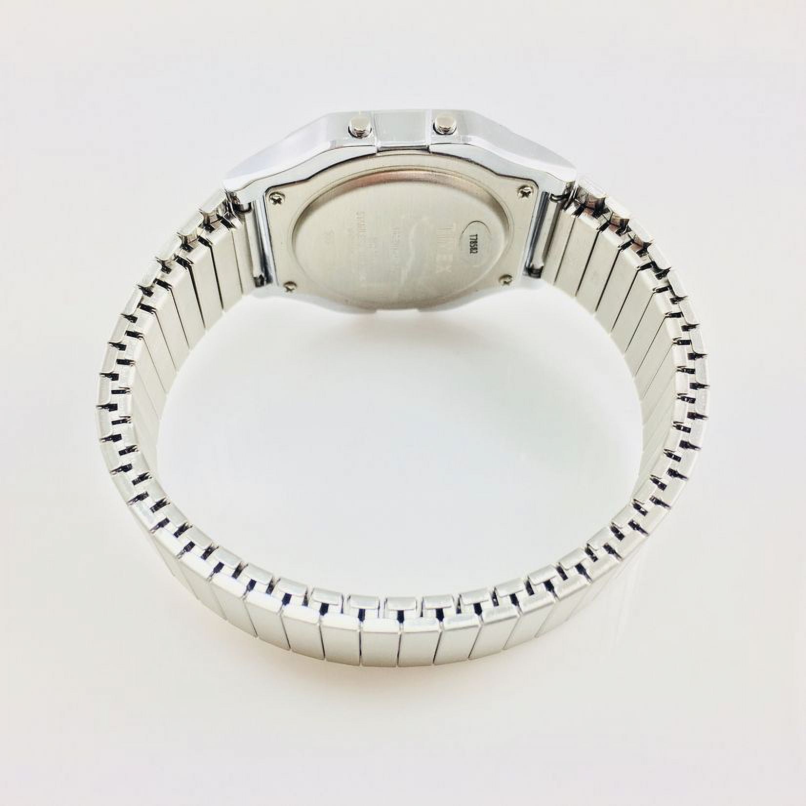 - Extra-long silver-tone 18mm stainless steel expansion band fits 6-to-8-inch wrist circumference