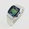 - Silver-tone 34mm resin case with acrylic lens; green digital display; Indiglo light-up watch dial
