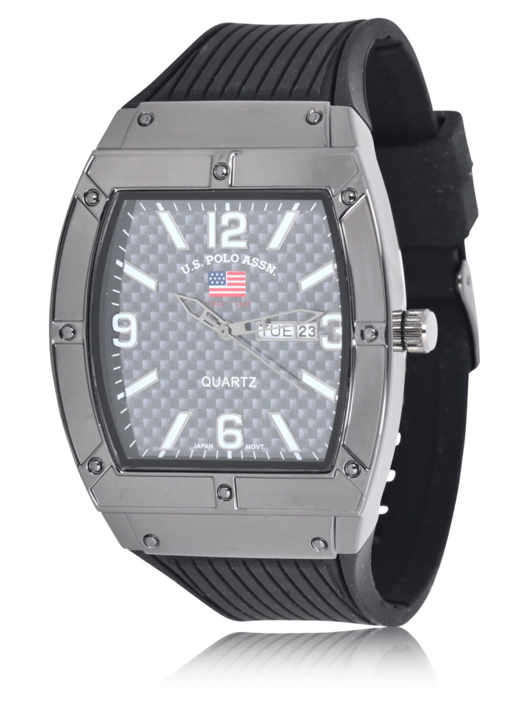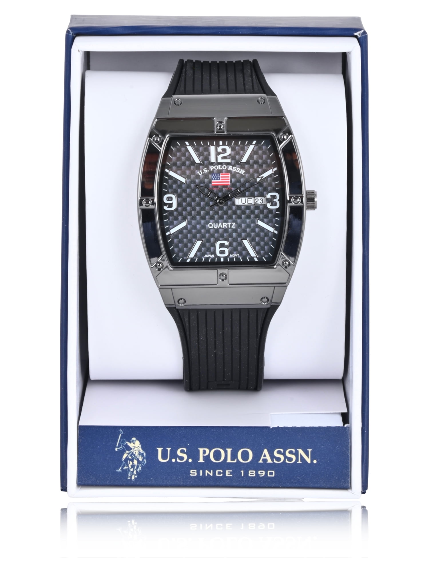• U.S. Polo Assn. Adult Male Analog Watch with Gun Metal Case and Black Silicone Strap – US9797WM. Every moment of your life is precious, and your time is valuable. Our attention to detail is reflected in our craftsmanship from the mechanics to the finish, as we know that our customers will not compromise on style or substance. Each watch is carefully designed and crafted with quality material. This watch is water resistant and can withstands splashes or brief immersion in water, but not suitable for swimming or bathing.