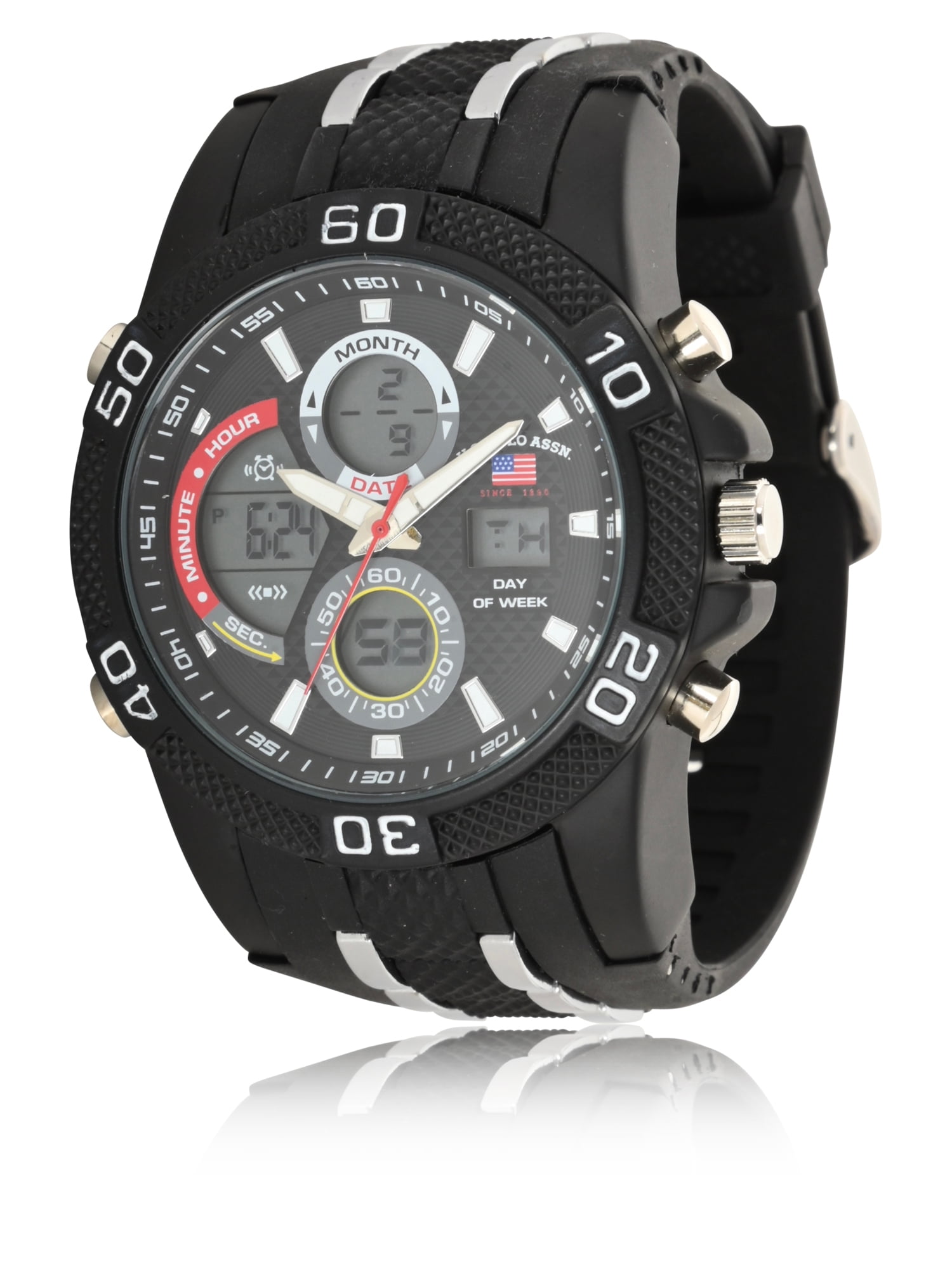 - USPA MENS SPORT WATCH ANALOG AND DIGITAL WITH BLACK AND SILVER LINK RUBBER STRAP
