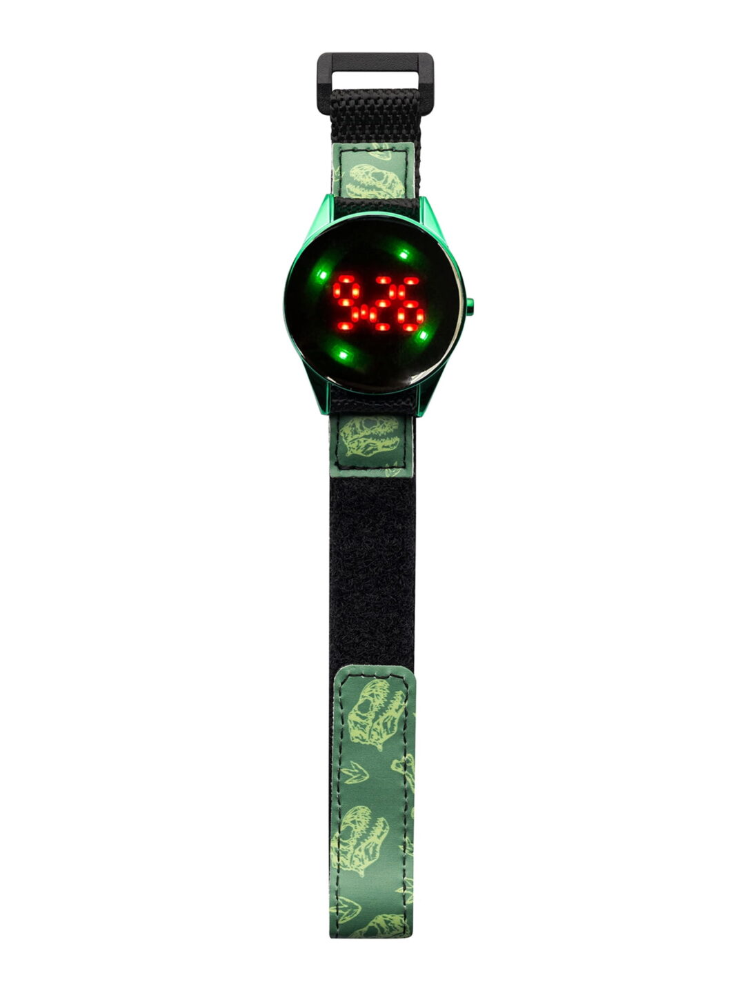 Wonder Nation Boys Round LED Dial Dino Print Velcro Kids Digital Watch, Green