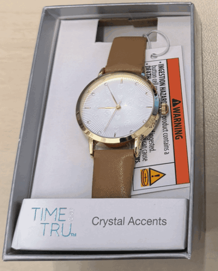 Time & Tru Ladies 34mm Gold Tone Etched Dial Adjustable Brown Strap Watch