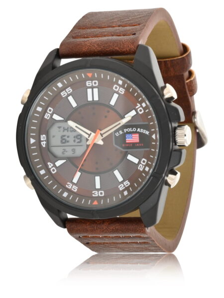 U.S. Polo Assn. Adult Male Analog/Digital Watch in Black with Brown Strap (US5297WM)