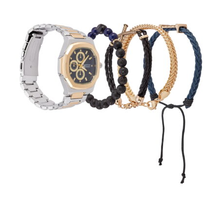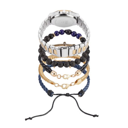 American Exchange Men’s Metal Analog Watch and 4 Piece Bracelet Set, Navy/Two Tone