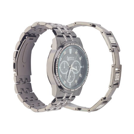 American Exchange Men’s Black Metal Bracelet Watch & Bracelet Set