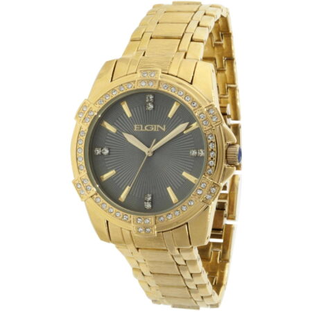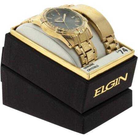 Elgin Gold Analog Wristwatch & Bracelet Set with Crystals, Men’s (FG10009ST)