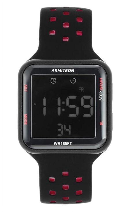 Armitron Unisex Adult Sport Wristwatch with Black Square Dial and Red Strap