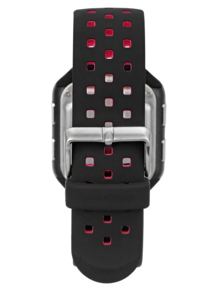 Armitron Unisex Adult Sport Black Red Square Wristwatch with Silicone Band