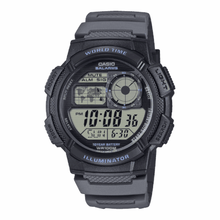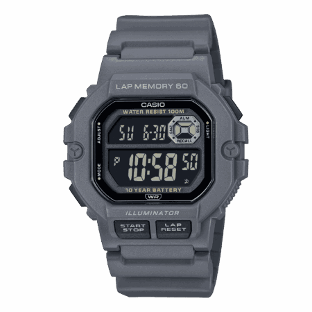 Casio Mens Digital Wristwatch 10-Yr Battery 100M Wr Led Backlight Stopwatch Gray