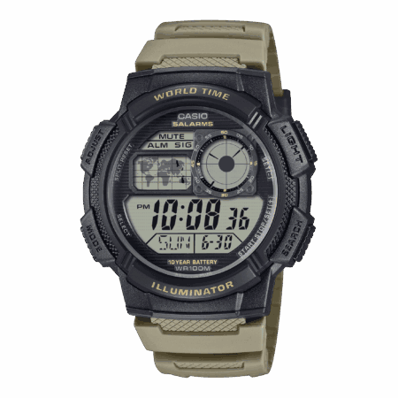 Casio Mens Digital Round Wristwatch Lc Analog 10-Yr Battery 100M Wr Led Light Stopwatch Sand Tan