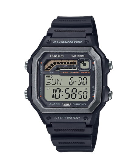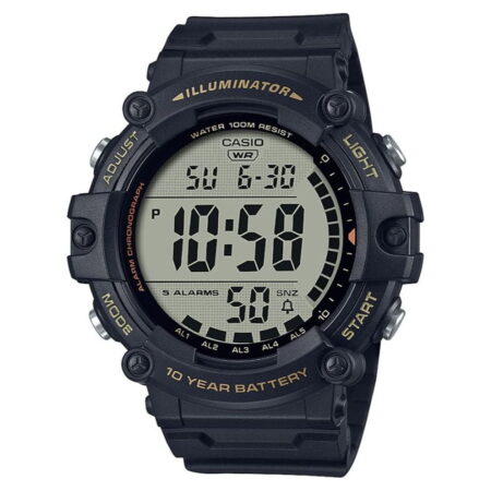 Casio Men’s Wide Face Digital Black Watch with Extra Long Resin Strap – AE1500WHX-1AV
