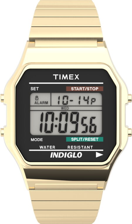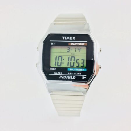 Timex Men’s Classic Digital Silver-Tone 34mm Casual Watch, Extra-Long Expansion Band