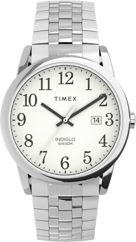 Timex Men’s Easy Reader 38mm Perfect Fit Watch – Silver-Tone Case White Dial with Silver-Tone Expansion Band